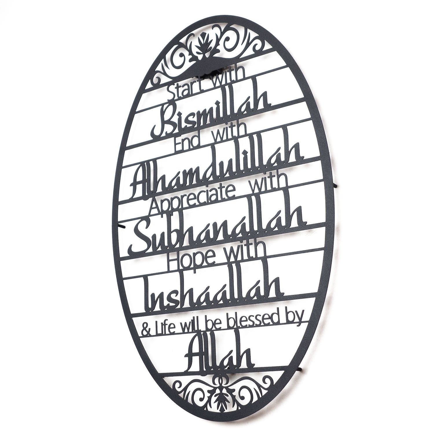 - Design: Rounded Arabic calligraphy featuring “Bismillah” and “Subhanallah”